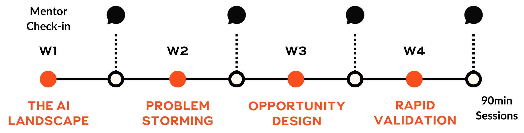 This could mean embedding AI into your products and services or discovering entirely new ways to create value. We're talking 6-week sprints where ideas meet reality after all the best way to test an idea is to build the damn thing.